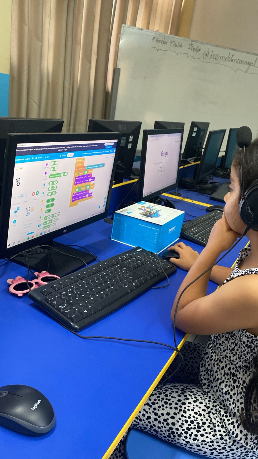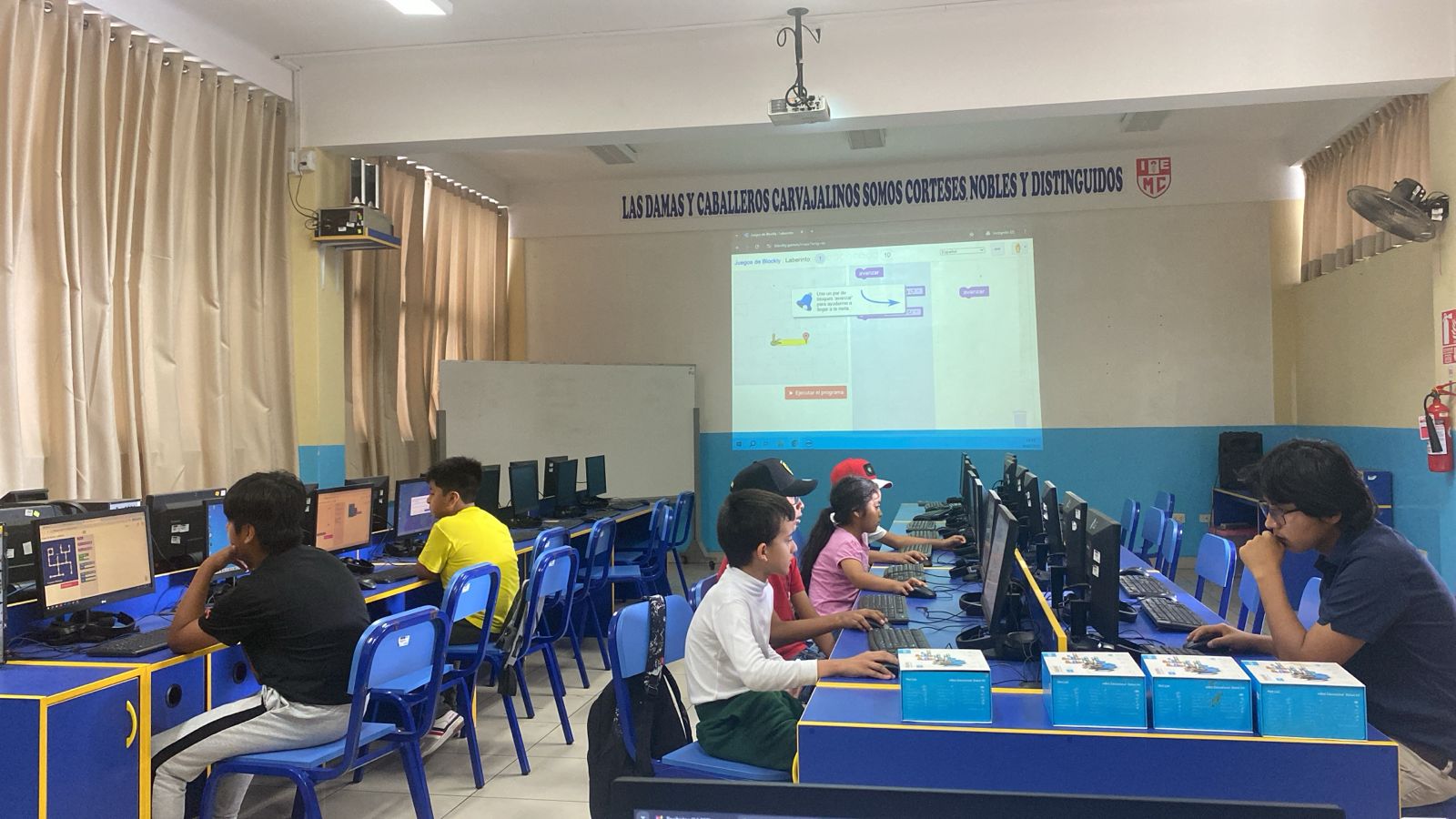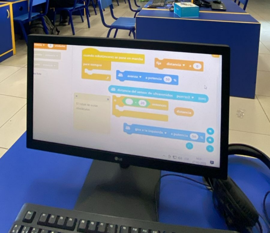 Aprenden a programar el robot mediante plataformas visuales, desarrollando pensamiento lógico y estructurado.